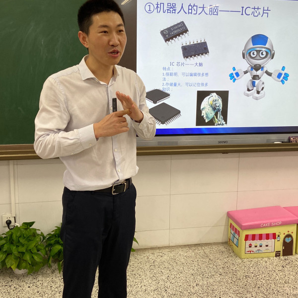 陪伴小朋友講課的是壹玖肆貳科技有限公司AI工程師虞新建叔叔,也是壹玖肆貳科技總經理! 他在跟小朋友講解過程中用到一些SMT貼片加工元器件,引起了同學們極大的好奇心。給龍外二年級9班的孩子們帶來了一堂別開生面的機器人誕生講解課堂。也給龍外的同學們詮釋了什么是機器人。生動活潑地講解了機器人誕生的過程、機器人的歷史等等。